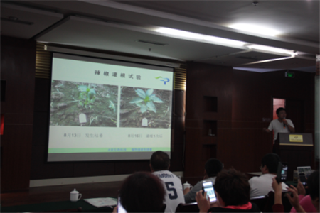 四川太抗華北區(qū)域總經(jīng)理張克東就太抗?系列產(chǎn)品、當(dāng)今農(nóng)藥發(fā)展方向和趨勢進(jìn)行了詳細(xì)的剖析和講解——現(xiàn)階段正處于未來農(nóng)業(yè)發(fā)展的風(fēng)口,規(guī)模農(nóng)業(yè)、現(xiàn)代農(nóng)業(yè)示范園和生態(tài)農(nóng)業(yè)是發(fā)展方向,隨農(nóng)業(yè)轉(zhuǎn)型而變的是農(nóng)資企業(yè)的轉(zhuǎn)變,量身定制的作物整體解決方案、專業(yè)的技術(shù)指導(dǎo)與服務(wù)、產(chǎn)前產(chǎn)中產(chǎn)后全程服務(wù)、創(chuàng)新的可持續(xù)的解決方案是農(nóng)資企業(yè)生存的必選之路,連作障礙和新生病蟲草害是現(xiàn)代農(nóng)業(yè)面臨的難題與痛點(diǎn)。緊接著他介紹了太抗?枯芽春TM和太抗?哈茨木霉菌的優(yōu)勢及其在作物病害上的作用機(jī)理。